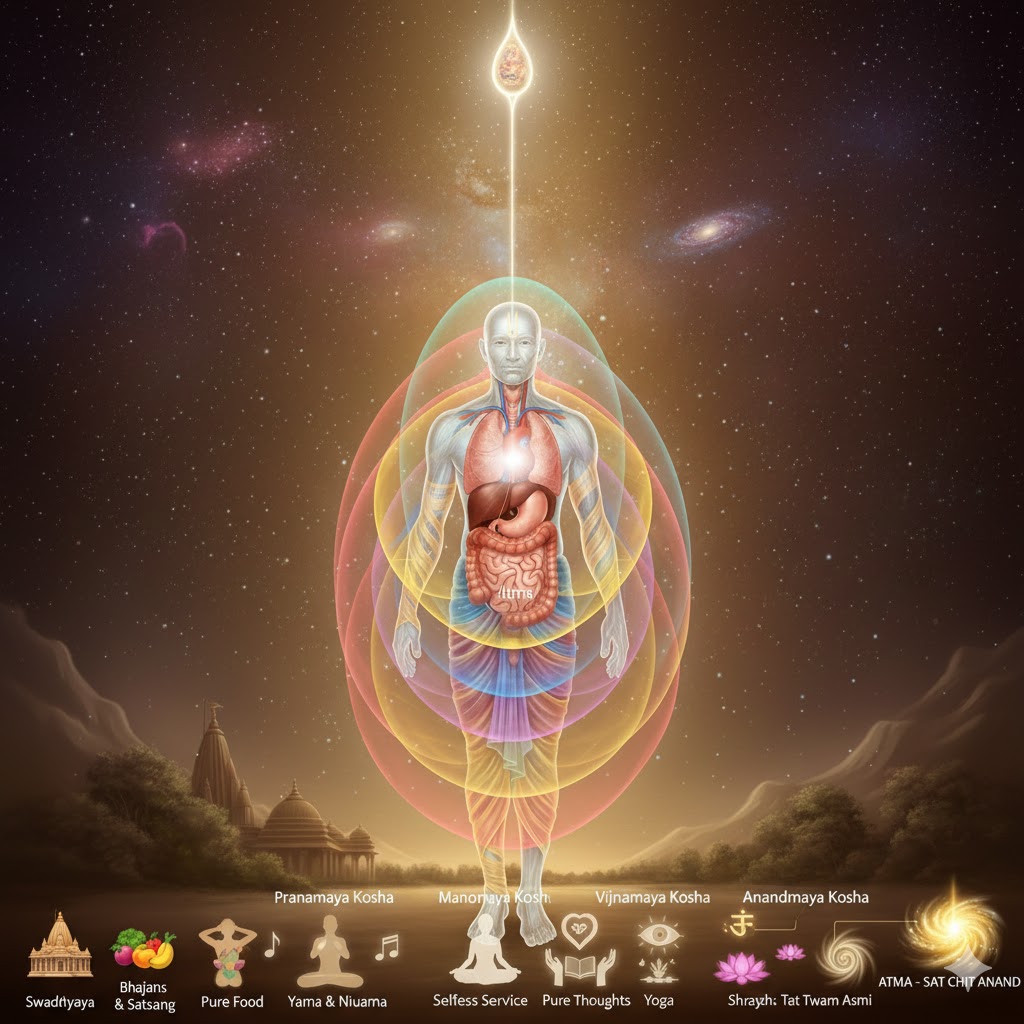agree with Bhagwan Shri Sathya Sai Baba that man has got five koshas and three