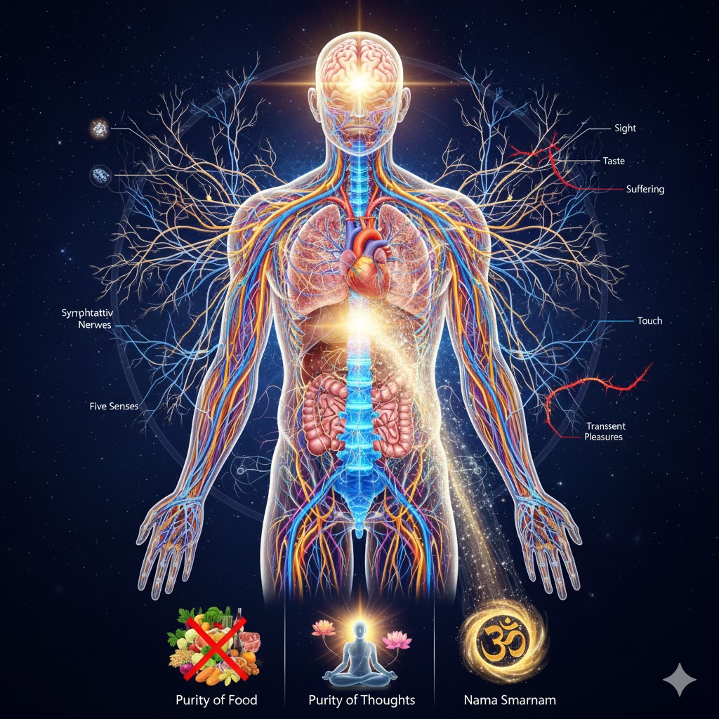 or Physical body is purified by Swadhyaya, Pure Food from all senses and