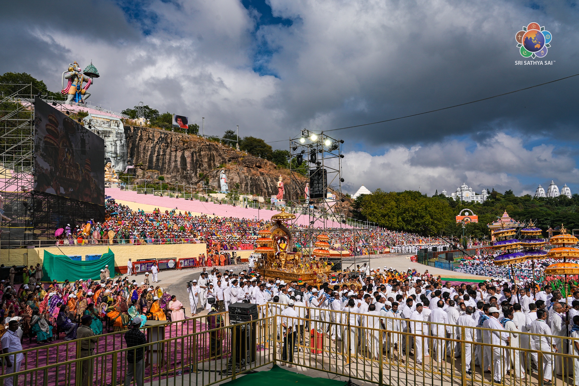 (Golden Chariot Procession) at Sri Sathya Sai Hill View Stadium.
